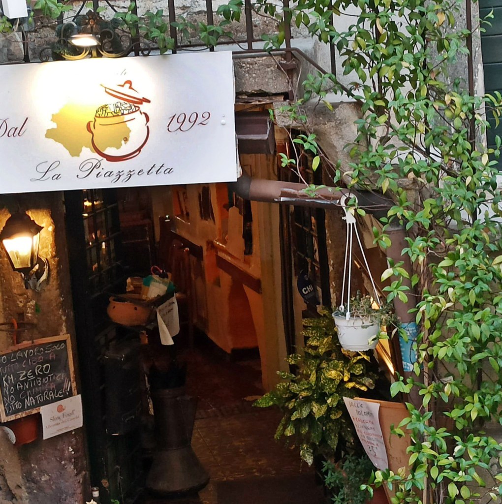 Trionfo del gusto a La Piazzetta (link), piccolo locale nel borgo antico su via San Giovanni 47, menù e altri avvisi scritti in romanesco. Riconoscimenti dal Touring Club Italiano, Gambero Rosso (un gambero edizione 2023) e giornali esteri come El Pais.