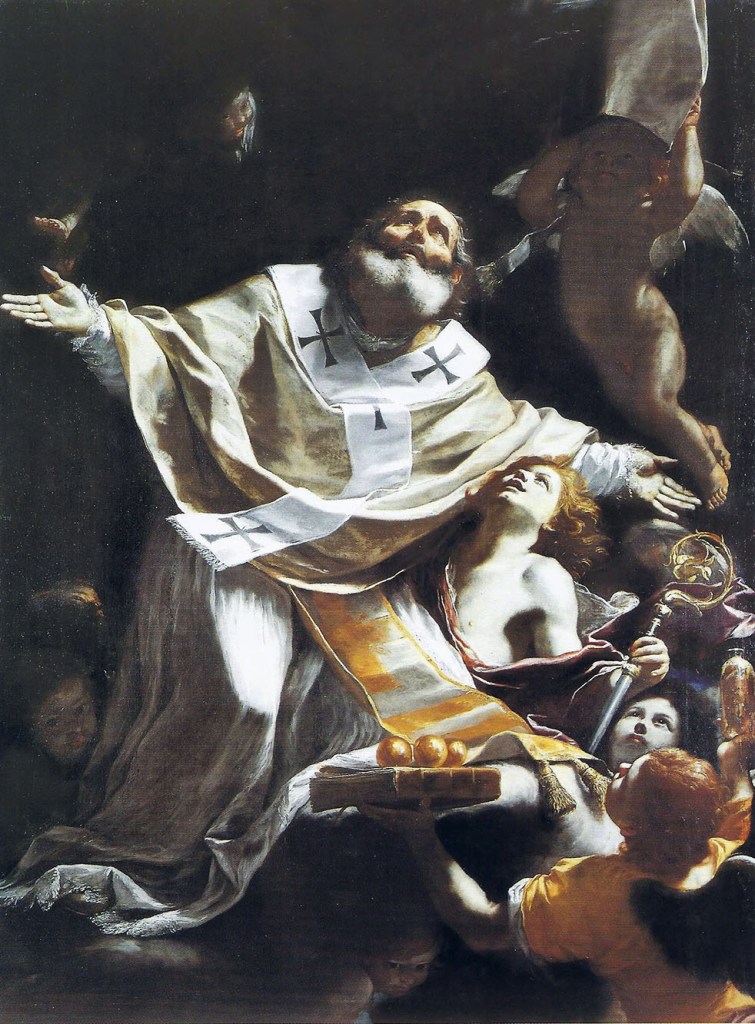 […] Decise perciò di agire di notte. Avvolte delle monete d’oro in un panno, uscì di casa e raggiunse la dimora delle infelici fanciulle. Avvicinatosi alla finestra, passò la mano attraverso l’inferriata e lasciò cadere il sacchetto all’interno. Il rumore prese di sorpresa il padre delle fanciulle, che raccolse il denaro e con esso organizzò il matrimonio della figlia maggiore. […]