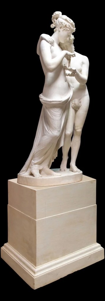 It was in Antonio Canova's studio during 1829, a fact widely documented. It is a plaster depicting “Cupid and Psyche standing” made from marble now in the Louvre. The work is owned by Veneto Banca Spa in liquidation, now on sale at the Bonino Auction House (link) as part of the bank's liquidation process. Auction starts on January 26, 2023, at 6 pm Italian time. The Italian State considers this work of particular cultural importance, therefore it cannot be exported.