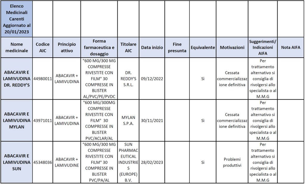 In questa pagina non è possibile inserire (tentandoci ho trovato difficoltà) tutti quei dati, ovvero 11 colonne per identificare i nomi dei prodotti, numeri di identificazione, principi attivi, forme farmaceutiche e dosaggio, motivi della carenza o fine prodotto, note allegate, il tutto moltiplicato per 3.213 righe di farmaci differenti: