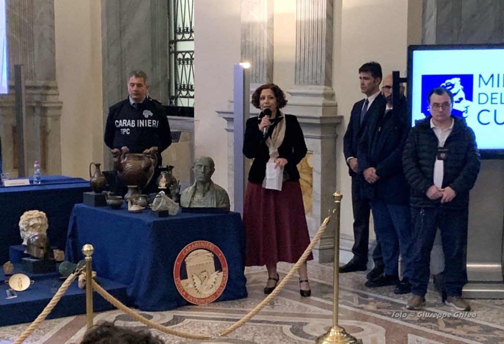 “L’articolo 9 della Costituzione parla della tutela del patrimonio della nazione – ha detto Gennaro Sangiuliano, ministro alla Cultura – Tutelare il patrimonio della nazione vuol dire anche evitare che le nostre opere vengano depredate e portate all’estero senza le necessarie autorizzazioni. Il recupero del patrimonio culturale è uno dei doveri del mio ministero, opera che intendo portare avanti con determinazione. La certezza del diritto è segno di civiltà e vi rientra questo recupero. La diplomazia dell’arte è importante come è importante tutelare il copyright come diritto d’autore. Noi, giustamente, condanniamo l’aggressione di una nazione a un’altra come un’aggressione a una civiltà e a un popolo. Allo stesso modo ci vuole civiltà nel tutelare i beni che appartengono a un’altra nazione. Dobbiamo garantire la certezza del diritto anche in questo ambito. Quello che presentiamo oggi è il risultato di un’attività corale di cooperazione internazionale, ma molto resta ancora da fare su questo fronte”.