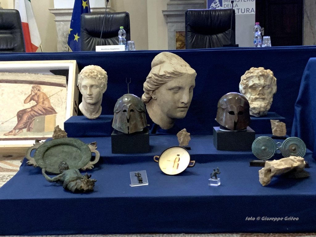 “Oggi celebriamo il ritorno a casa di questi beni che fanno parte di un grande patrimonio condiviso – ha raccontato Matthew Bogdanos, viceprocuratore del District Attorney’s Office di Manhattan – Nella nostra azione portata aventi negli Stati uniti abbiamo individuato e sequestrato in totale 4.500 oggetti d’arte per circa 300 milioni di dollari in valore, rubati e trafugati da 25 paesi diversi. Solo il recupero di reperti italiani ammonta a 500 reperti per circa 55 milioni di dollari dopo aver compiuto 75 perquisizioni. L’operazione mi ha permesso di lavorare con giganti come i Carabinieri TPC, in particolare Angelo Ragusa che conobbi quando eravamo ben più giovani in Iraq, uomo che continua ad avere la stessa passione, energia e fuoco dentro, poi i grandi esperti dell’Arte come Giuditta Giordani che fa parte del mio team e ha una grande esperienza, poi ottimi archeologi esperti come Federica Pitzalis e Sara Neri”.