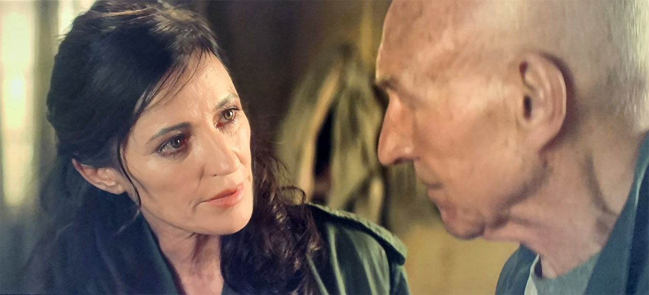 È un dialogo introspettivo, quasi alla fine dell’episodio 9, il penultimo della stagione 2. Al centro la rievocazione di un doloroso ricordo di Picard stimolato in questo dall’osservatrice romulana Tallinn, interpretata dall’attrice irlandese Orla Brady.