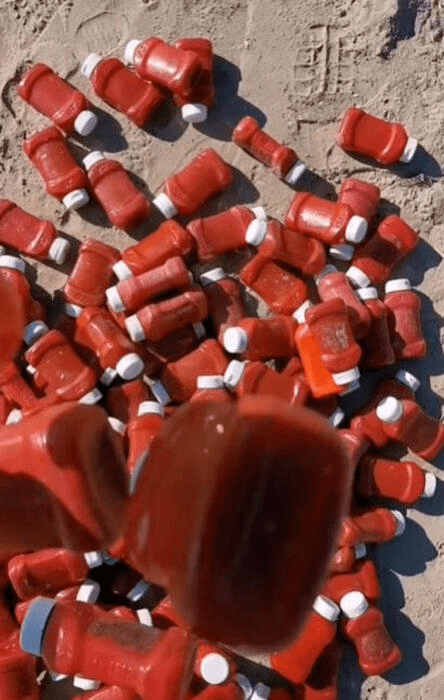 Mi sembra molto assurdo e non plausibile che navi da carico si perdano parte delle merci trasportate, oltretutto le bottigliette sono di provenienza statunitense, vuote quelle per ketchup, piene quelle per maionese. Alcune con all’interno tracce miste di ketchup e acqua di mare.