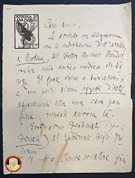 Dal testo si legge che Gabriele D’Annunzio scriveva “Al caro amico”, come riportato sulla busta non recuperata, individuato secondo risultanze investigative nella persona di Giovanni Rizzo. “Le accludo un telegramma con le indicazioni dell’arrivo, a Modane, del dottor Michele Mendelsohn, mio amico medico di Parigi. Il quale viene a trovarmi; e mi porta alcuni oggetti d’arte appartenenti alla mia casa parigina, rimasti ancora là. Essi sono destinati al Vittoriale degli Italiani”.