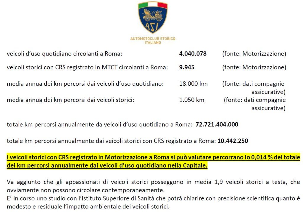L’Automotoclub Storico Italiano (ASI) e i Registri Nazionali Alfa Romeo, FIAT e Lancia, Enti certificatori di veicoli storici previsti dall’Art. 60 del CdS (Codice della Strada), avevano già inviato proposte di deroga sull’ordinanza al sindaco di Roma e ne avevano discusso con l’Ufficio di Gabinetto dello stesso primo cittadino.