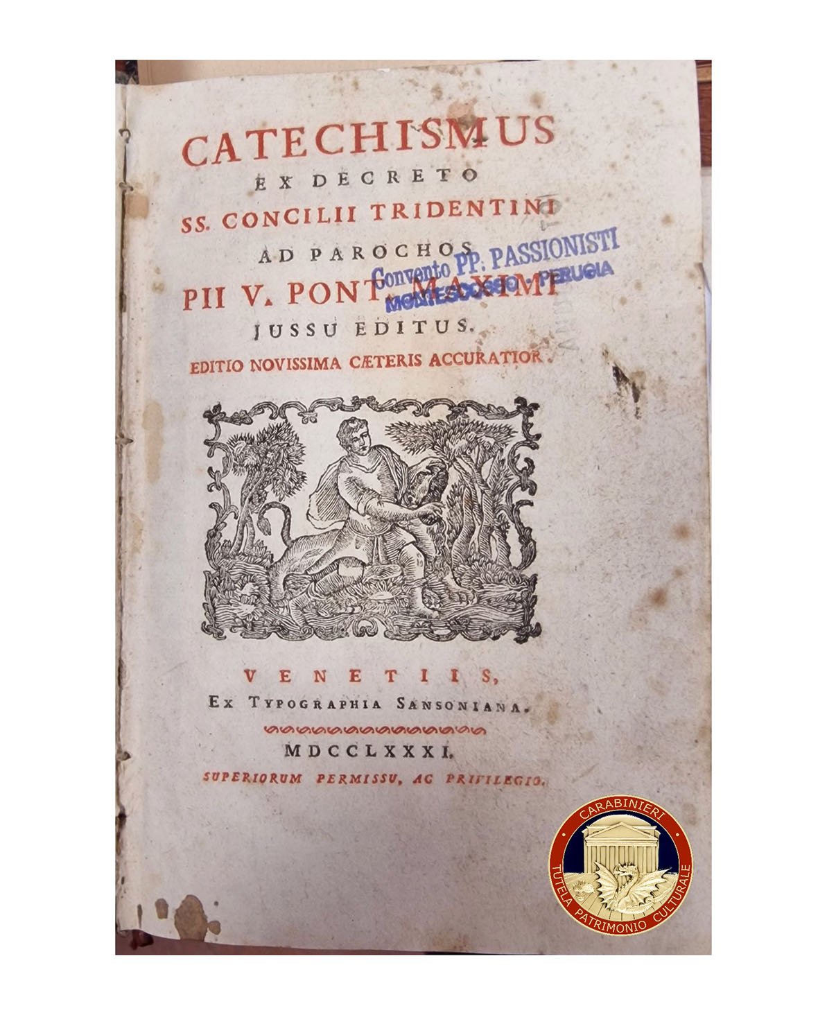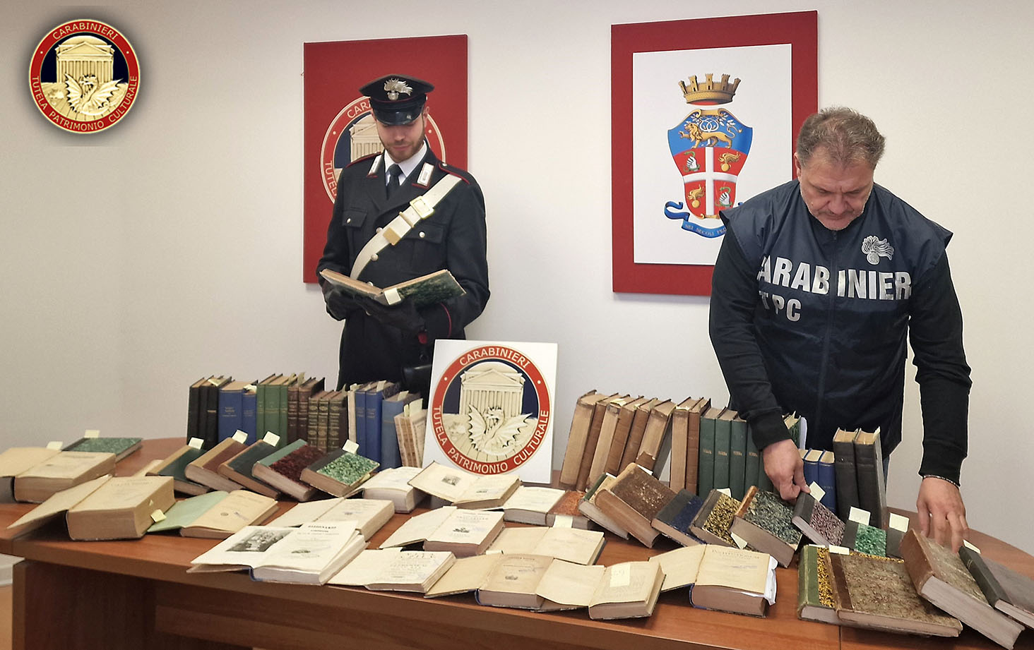 - 77 libri antichi in Italia che l’Arma dei Carabinieri ha sequestrato da un marketplace online. I libri erano stati rubati dagli archivi di un monastero.