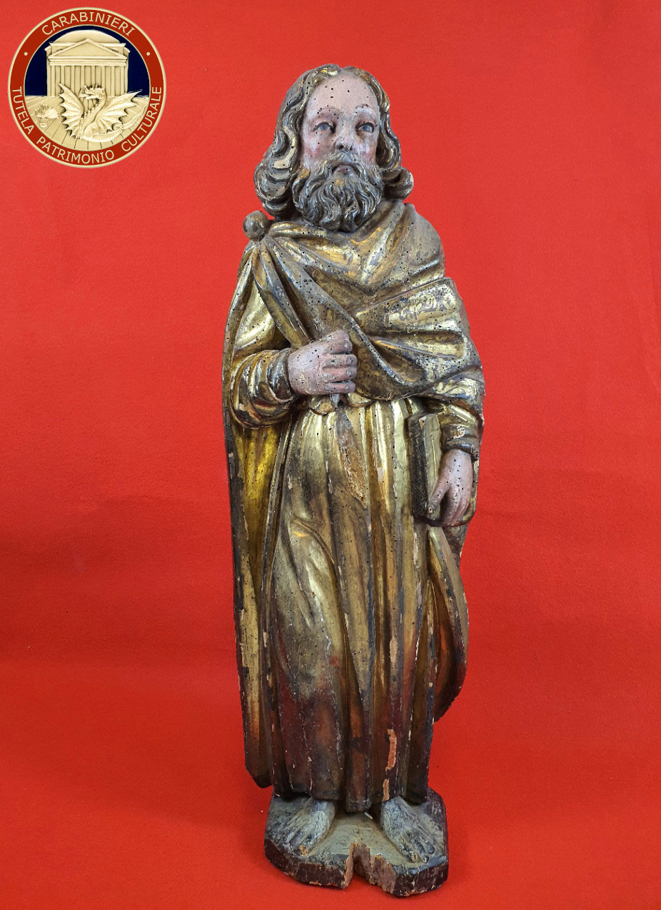 - 1 statua lignea policroma e dorata raffigurante un apostolo di scuola Valsesiana del XVII secolo di proprietà di un ente ecclesiastico.