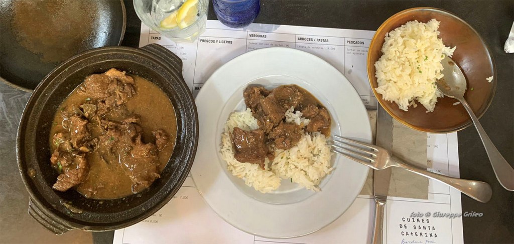 Come seconda portata ho voluto un Fricandò, a base di carne di vitello che, dietro consiglio dei miei commensali, ho voluto insieme ad arroz blanco (riso in bianco).