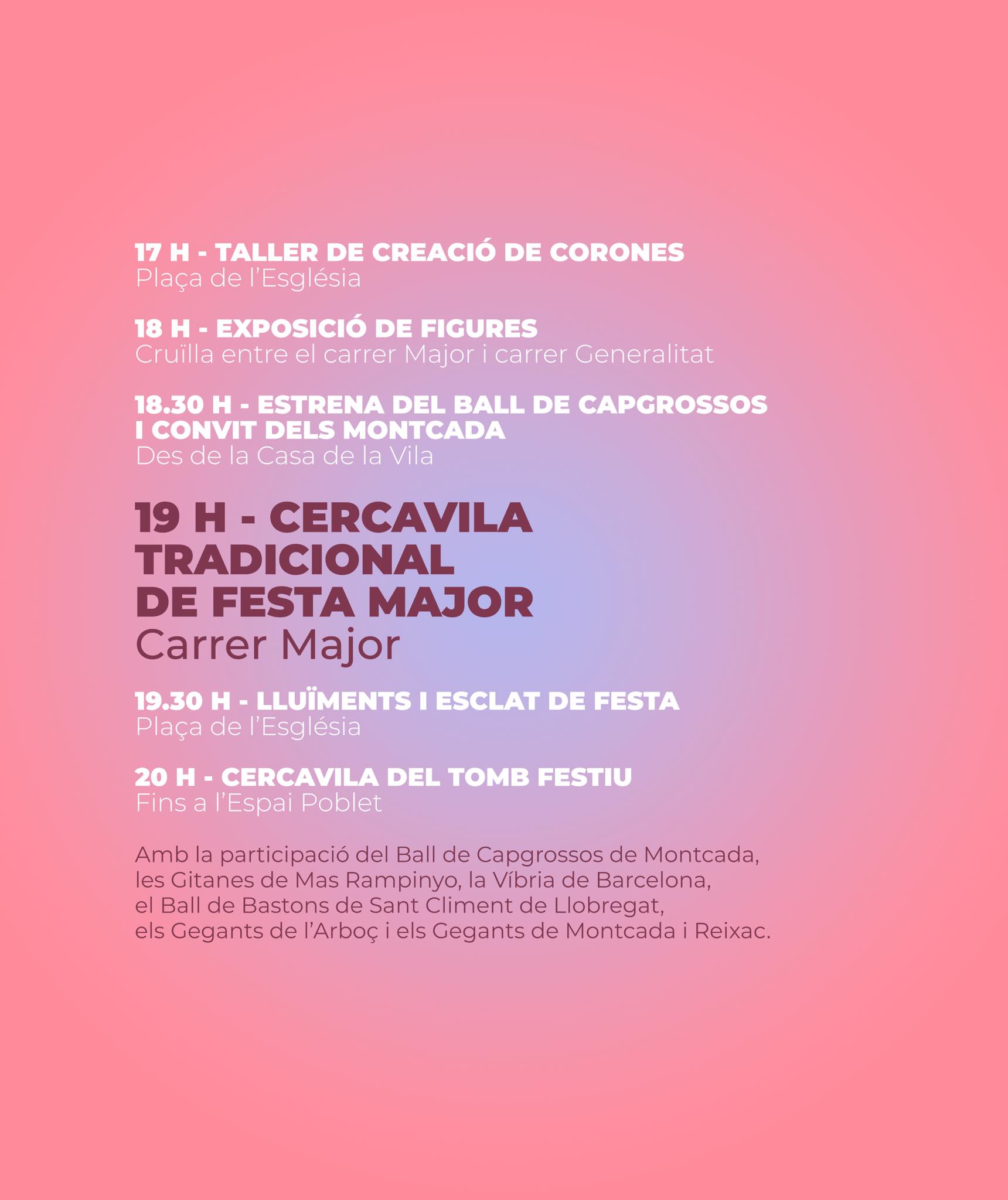 Festa suggestiva, esibizione affascinante e divertente quella dei gegants di Montcada i Reixac che rappresentano due personaggi vitali della storia catalana: Guglielmo Raimondo I Moncada, in Catalano Guillem Ramon I de Montcada e la Regina Elisenda de Montcada.