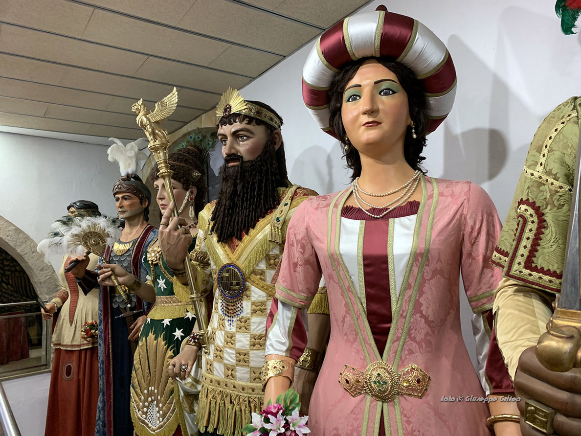 Tradizione presente anche in Sicilia con i “Sampaoloni” di San Cataldo comparsi nelle celebrazioni della Pasqua nel 1700, giganti che rappresentano gli apostoli. Oppure a Messina con i leggendari “Mata” e “Grifone”, utilizzati durante la festa dell’Assunta e processioni, tutto legato al culto della Vergine, ma anche “Kronos” e “Mytia” a Mistretta per la Festa della Madonna della Luce. E ancora a Caltagirone, Barrafranca, Aragona, Aidone. Tutte figure giganti di chiara derivazione spagnola.