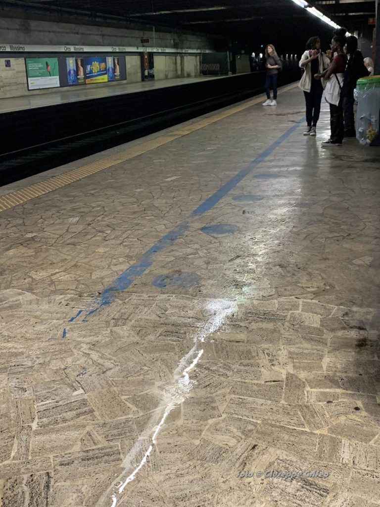 Queste sono condizioni che non riguardano solo la fermata Circo Massimo, stazione così centrale, così in vista e frequentata da turisti (presentiamo loro un vero schifo). La pioggia sotterranea cade in altre stazioni e loro corridoi: le fermate Policlinico della Linea B o Piazza Vittorio della Linea A sono solo due tra i tantissimi esempi possibili. Nella seconda sono evidenti rattoppi di fortuna sul tetto di corridoi per evitare copiose cadute d’acqua.