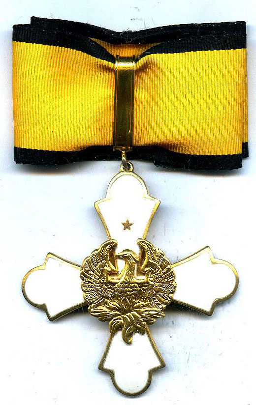 La placca dell’Ordine è una stella ad otto punte d’argento con al centro la fenice.