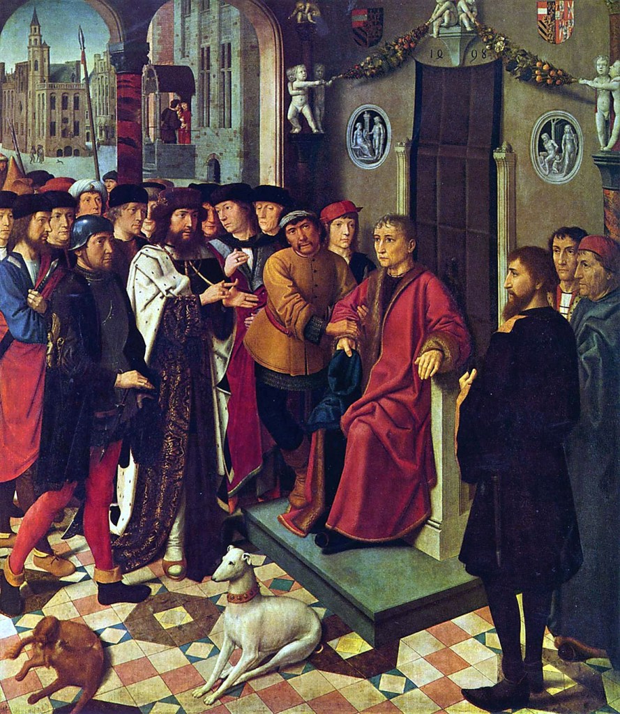 Questa di David è un’opera dell’arte classificata come fiamminga primitiva, commissionata all’artista per adornare la sala degli assessori del Municipio di Bruges dove si riunivano proprio i giudici della città.