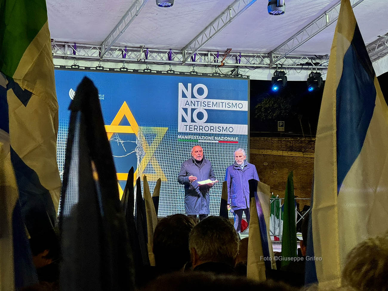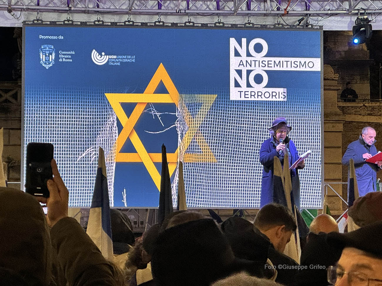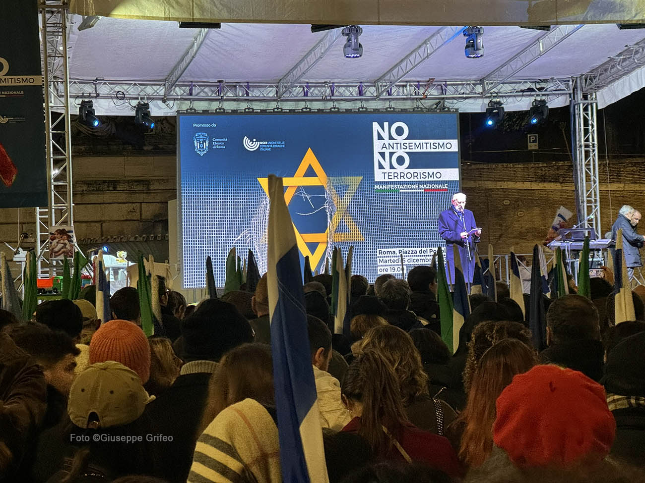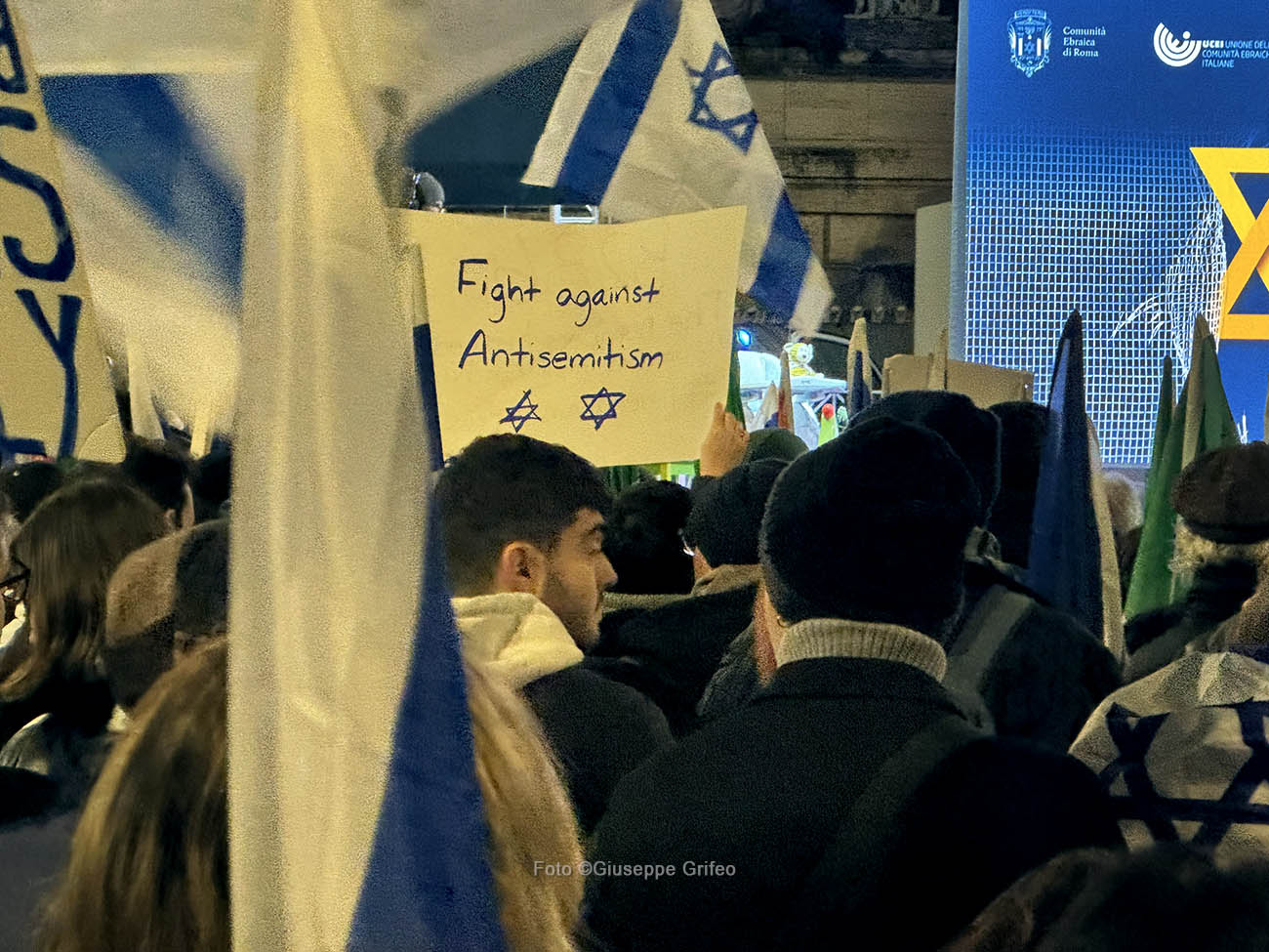 Eccoli a usare foto nella fase iniziale o finale della manifestazione di martedì 5 dicembre 2023, organizzata e promossa promossa dalla CER-Comunità Ebraica di Roma e dall’UCEI-Unione delle Comunità Ebraiche Italiane.