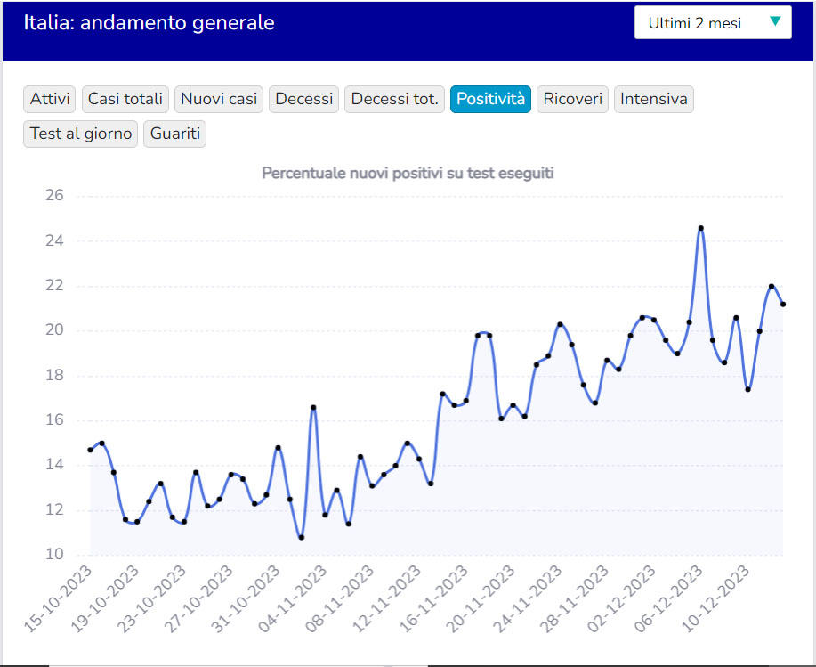 Come sottolineato dal virologo Fabrizio Pregliasco, l’ondata in risalita dei contagi “continuerà per almeno tre settimane e ai primi di gennaio avremo probabilmente il picco con 400-500 morti alla settimana”, ma lo scienziato rimarca come nell’ultimo periodo da parte dello Stato sia mancata la giusta comunicazione istituzionale per raccomandare di vaccinare e proteggere fragili e anziani.