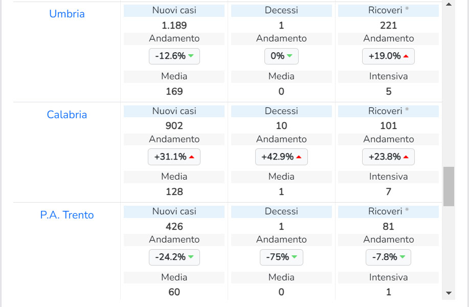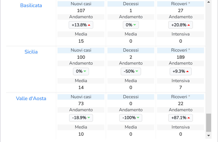Qui di seguito i riquadri dalla pagina riassuntiva RAI News sull’andamento e dati aggiornati quotidianamente e relativi al Covid-19 (dati della Protezione Civile).