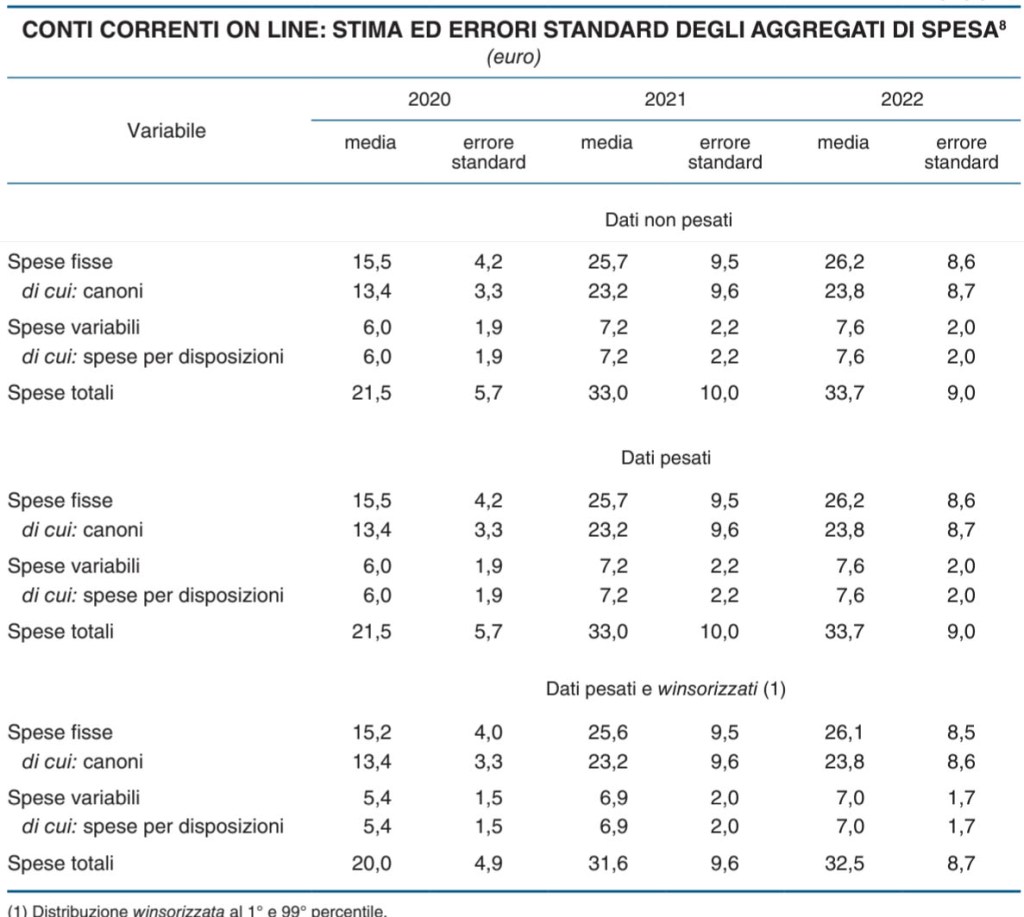 Nel 2022 la spesa per il pagamento dell’imposta di bollo è stata di 15,9 euro (17,4 euro nel 2021). Aggiungendo questa imposta, la spesa di gestione sale a 119,9 euro.
