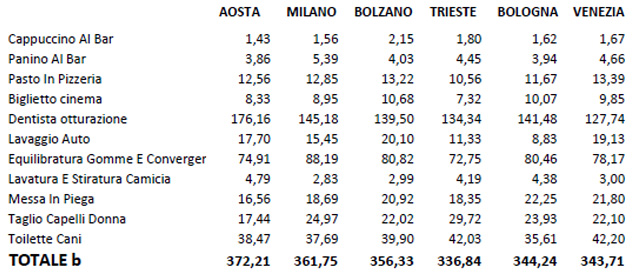 Poi ci sono Trieste (206 euro) e Milano (203,6 euro).