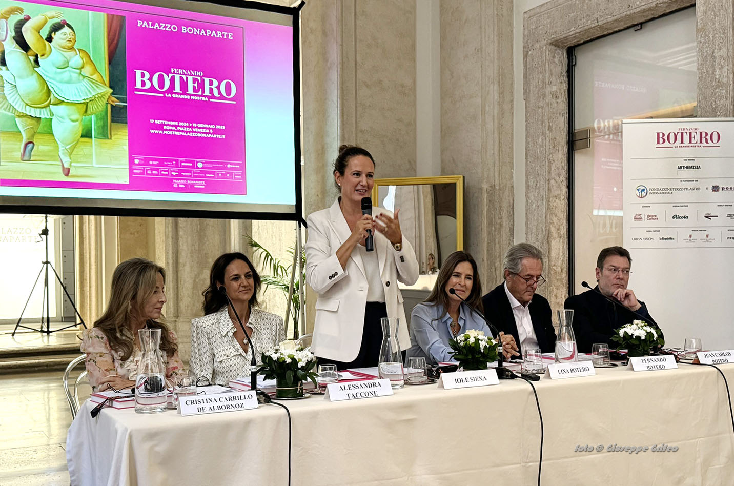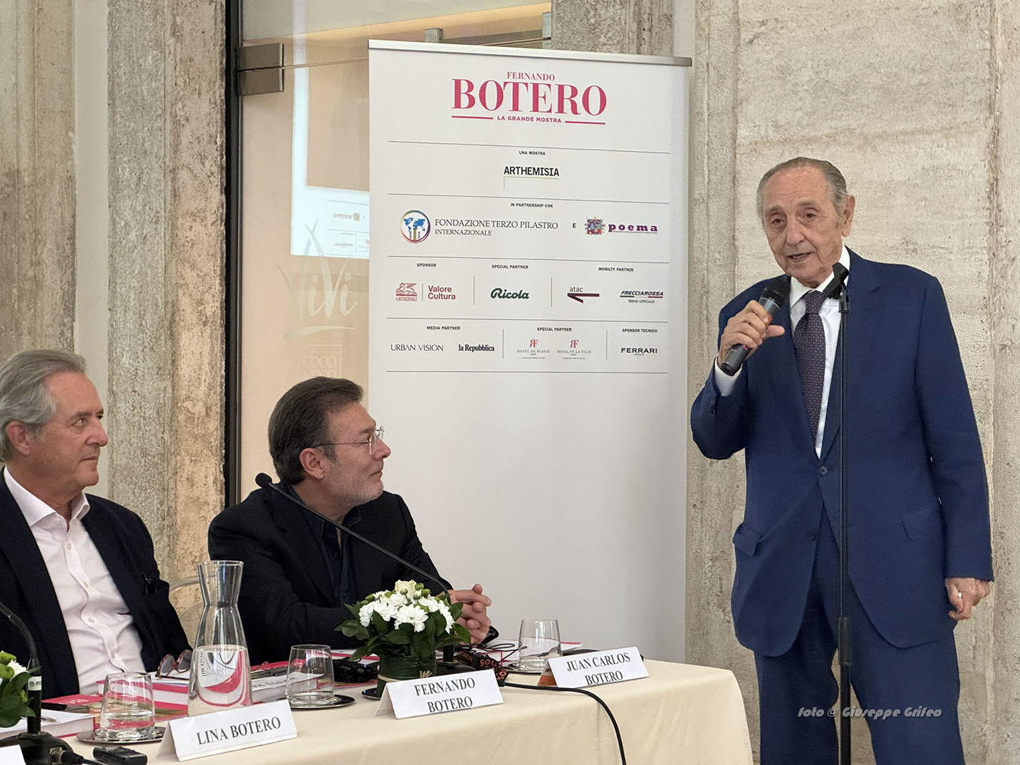 Al tavolo di presentazione alla stampa anche gli altri due fratelli Botero, Fernando e Juan Carlos insieme ad Alessandra Taccone, presidente della Fondazione Terzo Pilastro-Internazionale che ha sostenuto l’iniziativa affiancata da Poema e non poteva mancare il professore Emmanuele Francesco Maria Emanuele, avvocato conosciuto in Italia e all’estero come grande filantropo, vicino alle arti, mecenate oltre che ideatore e realizzatore della stessa Fondazione. Il tutto in collaborazione con la Fernando Botero Foundation.