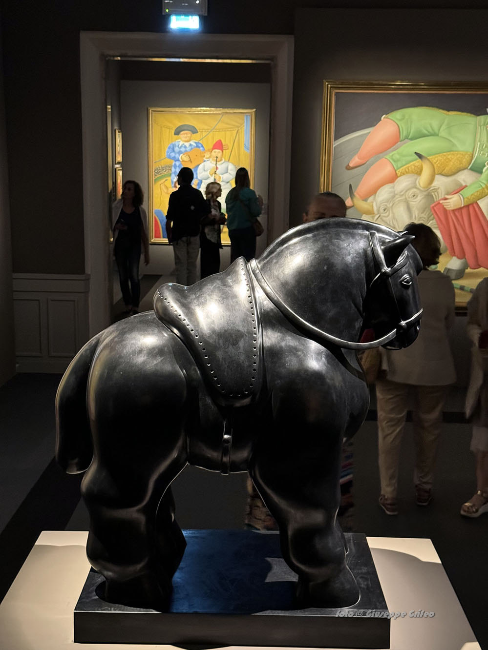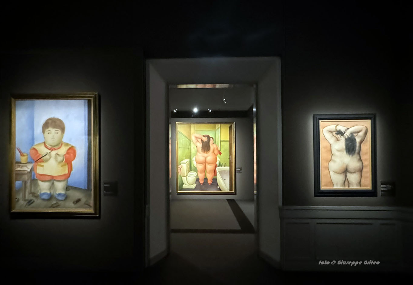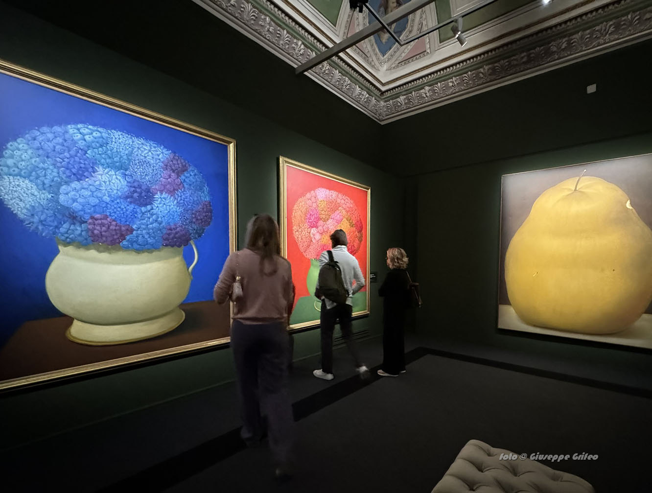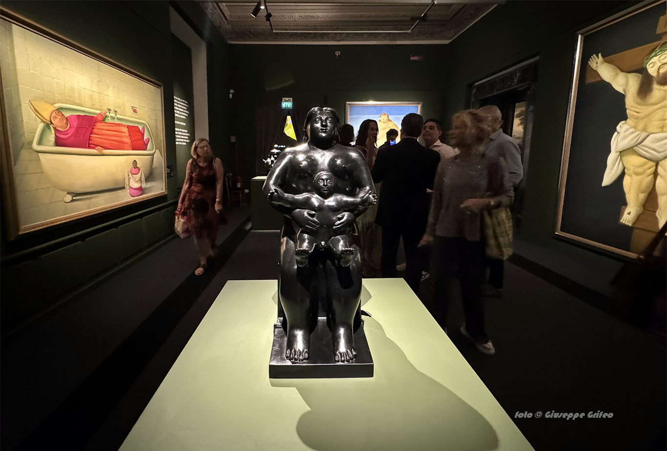 L’immersione nelle sale di Palazzo Bonaparte apre gli occhi alle sole fonti di luce e di colore sparse negli ambienti, le opere di Botero. Tutto stupisce la mente, le scelte cromatiche, la luce che vince le ombre, le forme sinuose, ricche, rotonde, opulente, l’originalità che ammalia e tocca profondamente. Non solo i corpi di donne e uomini, ma anche gli oggetti acquistano nuovi volumi quindi brocche, caffettiere, mele, pere, fiori, cesti, vasi, le gambe delle sedie, come pure gli animali, a cominciare dai gatti, dai tori e dai cavalli.