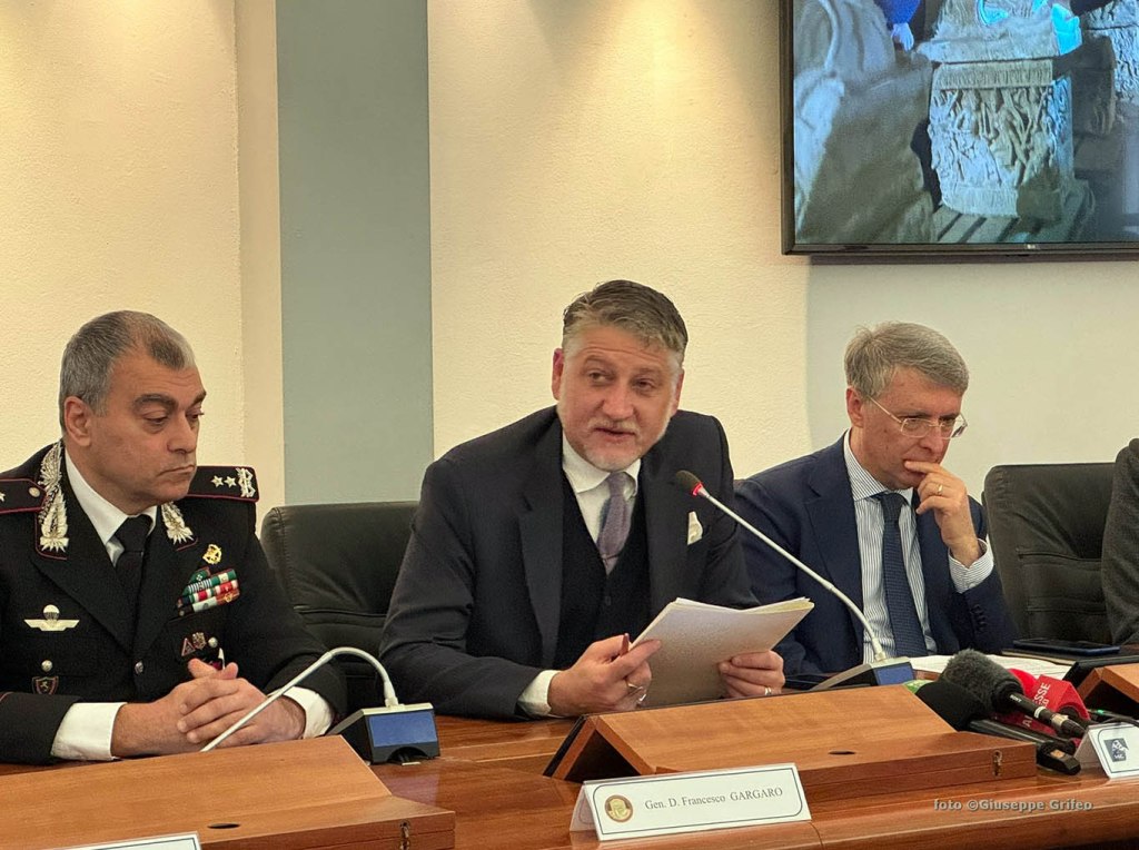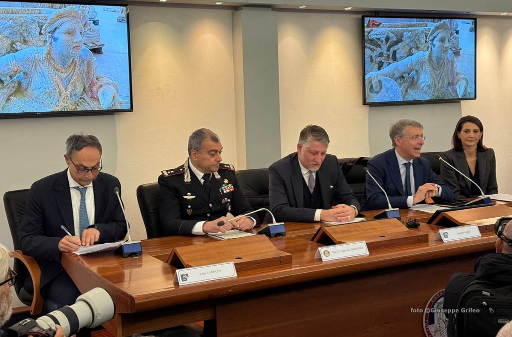 A svelare i particolari e i risultati dell’operazione, a descrivere gli oggetti recuperati e a fare un quadro della situazione, Raffaele Cantone, procuratore capo della Procura della Repubblica presso il Tribunale di Perugia, Annamaria Greco, sostituto procuratore della Procura della Repubblica di Perugia, il Gen. D. Francesco Gargaro, comandante dei Carabinieri Tutela del Patrimonio Culturale, Alessandro Giuli, ministro della Cultura e Luigi La Rocca, capo del Dipartimento per la Tutela del Patrimonio Culturale – Ministero della Cultura.