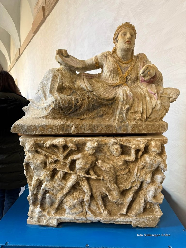 In questa sepoltura furono trovate quattro urne funerarie e due sarcofagi riconducibili alla gens Pulfna, antico nome ritrovato proprio su alcune delle urne raffigurate nelle fotografie del 2024.