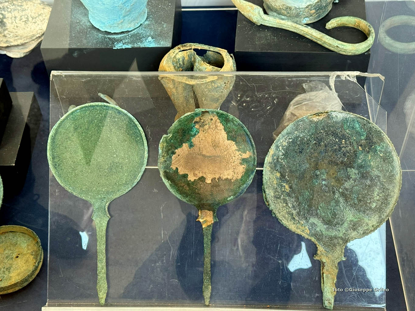 - quattro specchi in bronzo, uno dei quali con l’antica divinizzazione di Roma e della lupa che allatta soltanto Romolo;