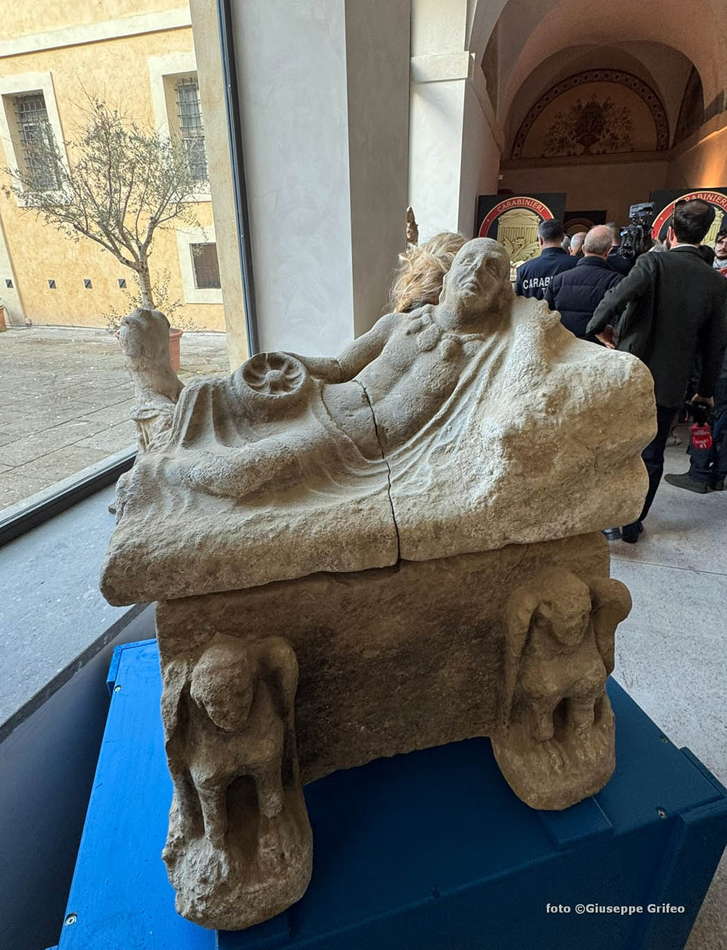 L’indagine, svolta dalla Sezione Archeologia del Reparto Operativo TPC, fece trovare sul web diverse fotografie di urne cinerarie che ritraevano personaggi in posizione coricata o semicoricata (semi-recumbenti), tipici della cultura etrusca.