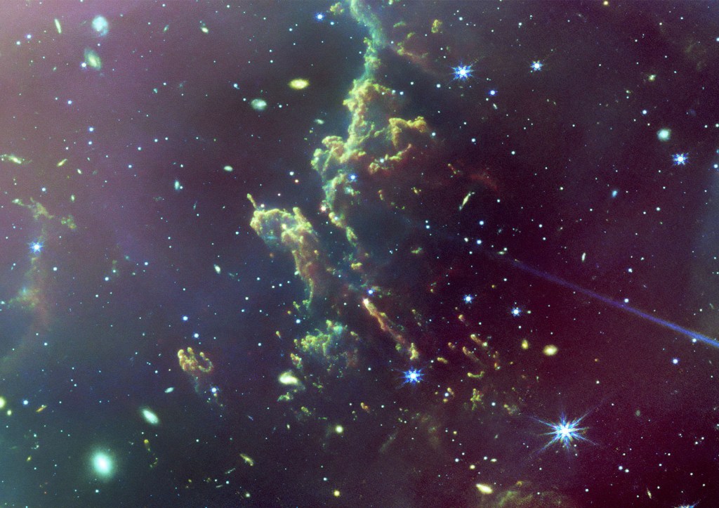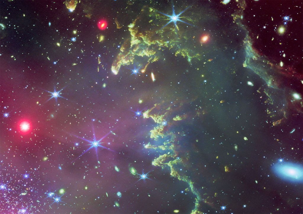 C’è una remota area della Piccola Nube di Magellano, una galassia nana, dove brilla di mille colori uno spettacolo stellare. Splende come una ghirlanda di Natale, è l’ammasso NGC 602 che ha un anello di polveri dai colori arancione, giallo, verde, blu e che delinea i contorni di quell’area ricolma di stelle. L’immagine è stata ripresa dal telescopio orbitale James Webb combinandola con i dati del Chandra X-ray Observatory della NASA.