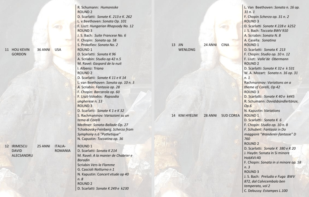 Categoria speciale del premio Esecuzione pianistica – Domenico Scarlatti: età compresa tra 20 e 37 anni, 12 ragazze e 21 ragazzi