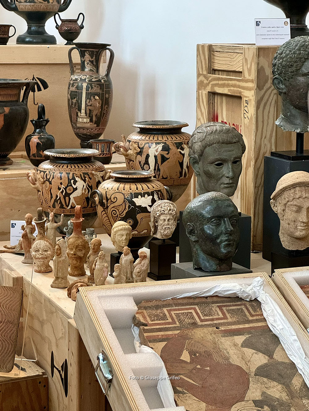 – 24 aprile 2024: 1 kylix attica a figure rosse (ricomposta da 44 frammenti) attribuita al pittore Makron e firmata Hieron (490 a.C.); 1 kylix attica a figure nere, ricomposta da 20 frammenti (529 a.C.); 12 frammenti di una coppa attica a figure nere (520 a.C.) attribuita al pittore Antimenes; 55 ambre Etrusco-Campane (V secolo a.C.); 800 frammenti di ambra (VII – VI secolo a.C.) localizzati nella disponibilità di un Museo statunitense;