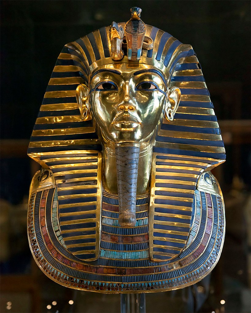 Prima era visibile nello storico Museo Egizio del Cairo insieme a parte del relativo tesoro funerario. Oggi è stata valorizzata nel nuovissimo e ampio GEM-Grand Egyptian Museum di Giza a poca distanza dalle tre Grandi Piramidi. È la maschera d’oro di Tutankhamon, splendida opera d’arte dell’oreficeria d’epoca faraonica.
