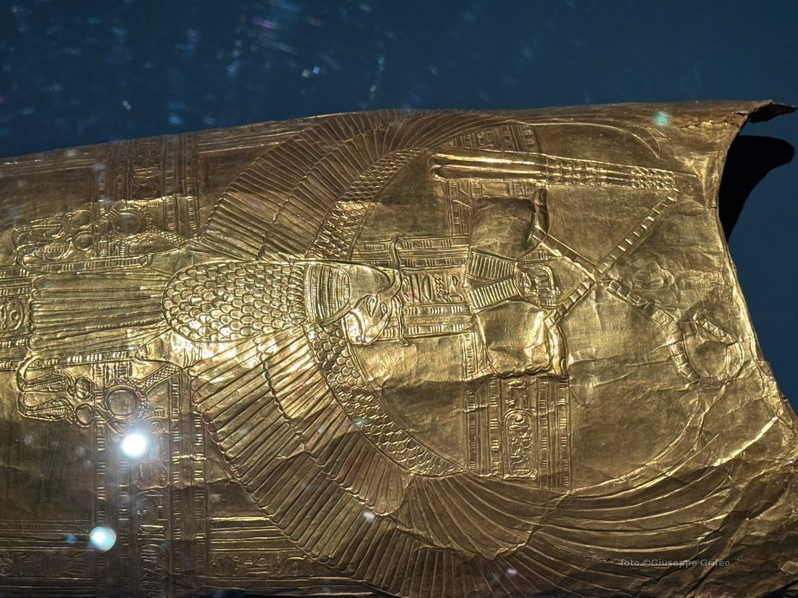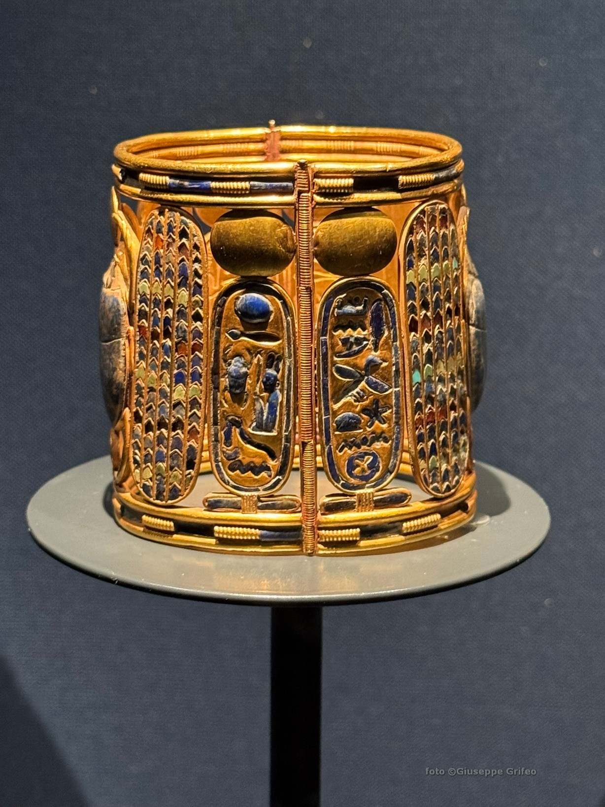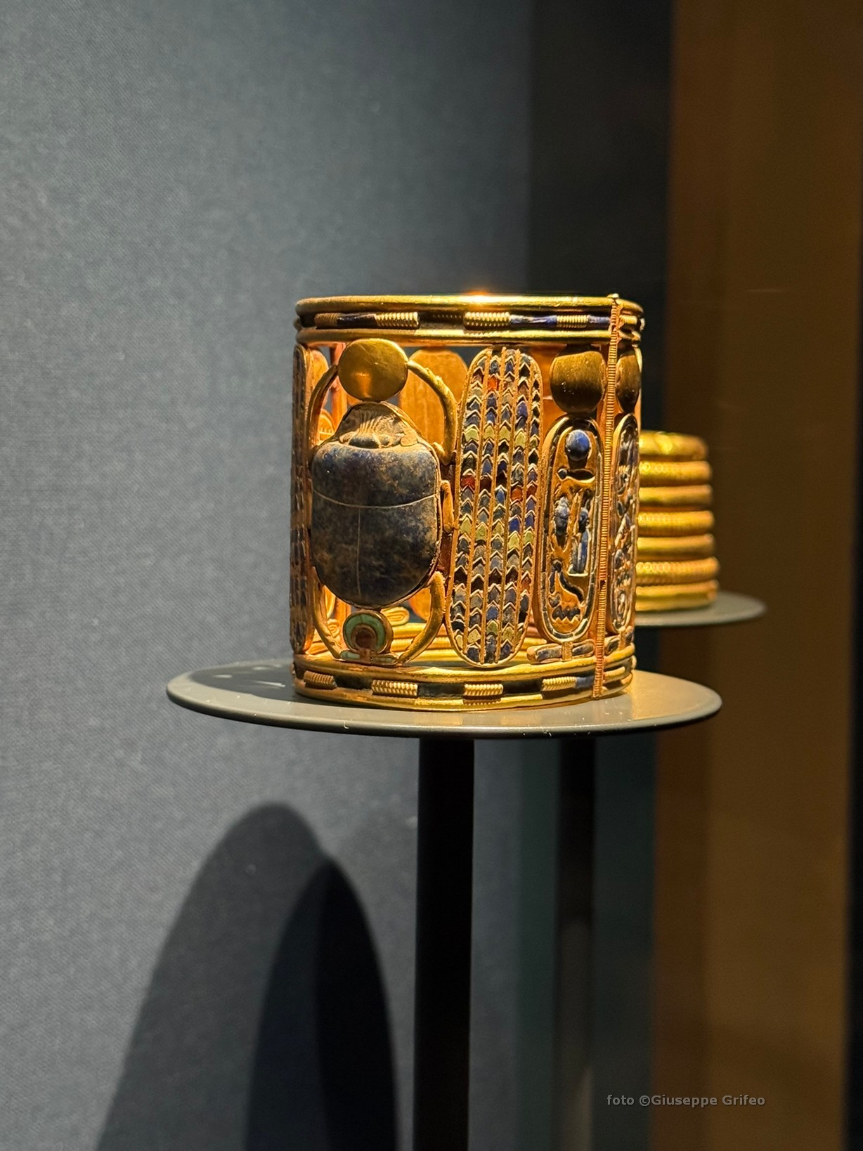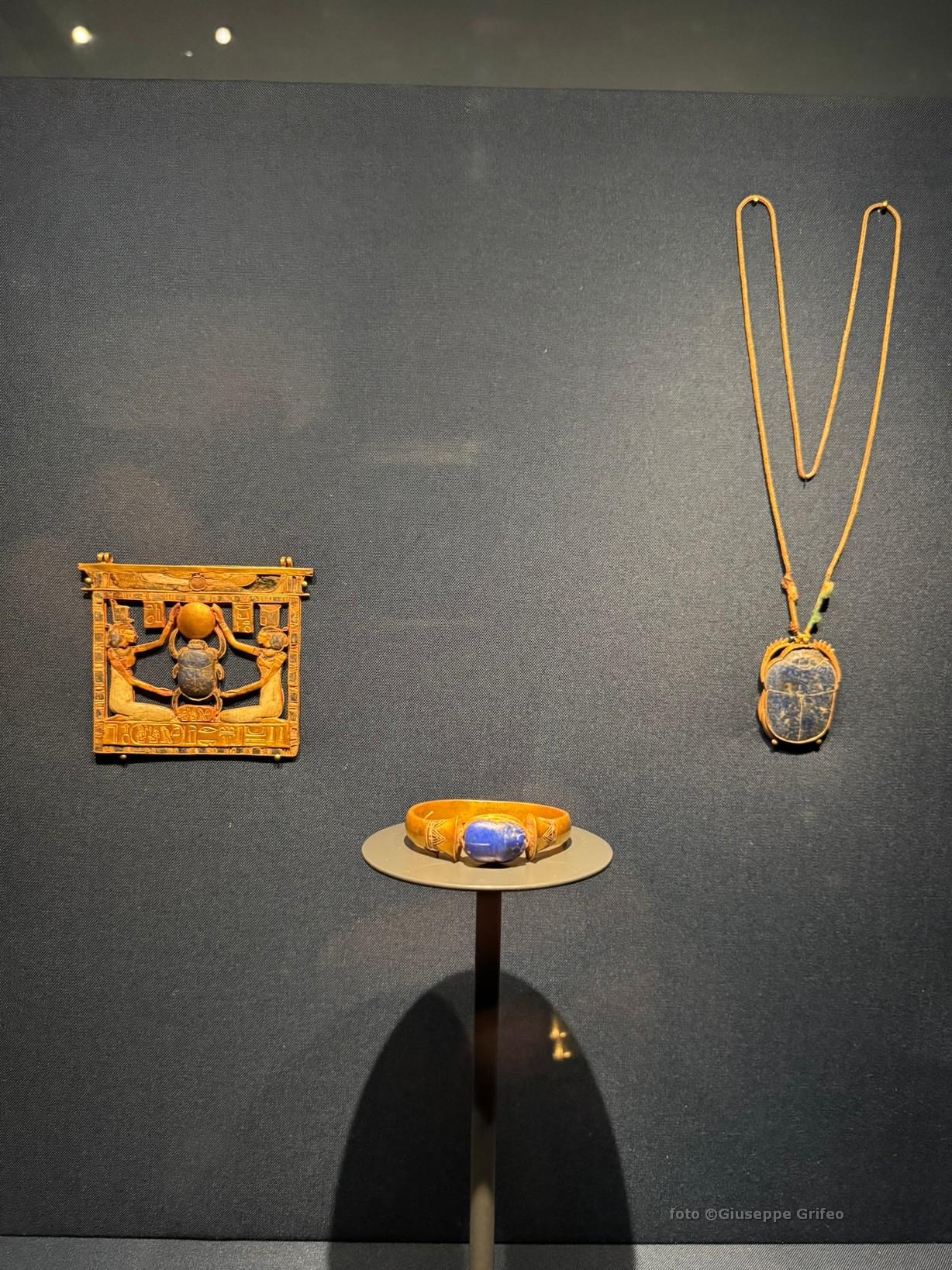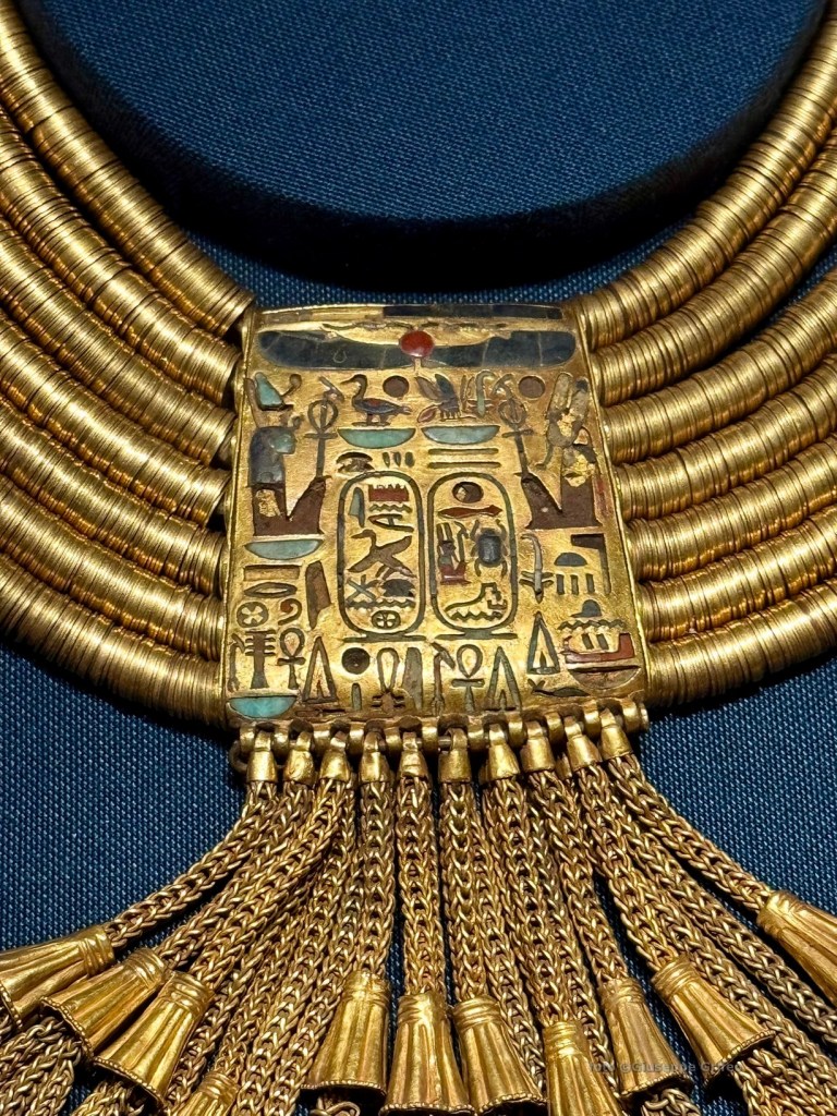 Oppure lo splendido sarcofago di Tuya (Nuovo Regno, XVIII dinastia, Regno di Amenofi III) o la sedia della principessa Sitamon (legno dorato, Nuovo Regno, XVIII dinastia, Regno di Amenofi III), oppure lo scrigno canopico di Yuya (in legno, oro, stucco, resina e pigmenti naturali), il letto in legno di Yuya e Tuya, il poggiatesta di Pepi (in calcite-alabastro egiziano, VI dinastia, Antico Regno), la formella con la rappresentazione di Akhenaton e della sua famiglia in adorazione del dio Aton (pietra calcarea dipinta, XVIII dinastia, Nuovo Regno), la maschera funeraria in oro di Amenemope (XXI dinastia, Terzo Periodo Intermedio) o il suo pendente pettorale (oro, lapislazzuli, feldspato e vetro), il bracciale di Psusennes I (oro, lapislazzuli e vetro, XXI dinastia, Terzo Periodo Intermedio), la collana di Osorkon II (oro, lapislazzuli, XXII dinastia, Terzo Periodo Intermedio), la copertura in oro e argento della mummia di Psusennes I dalla sua tomba a Tanis.