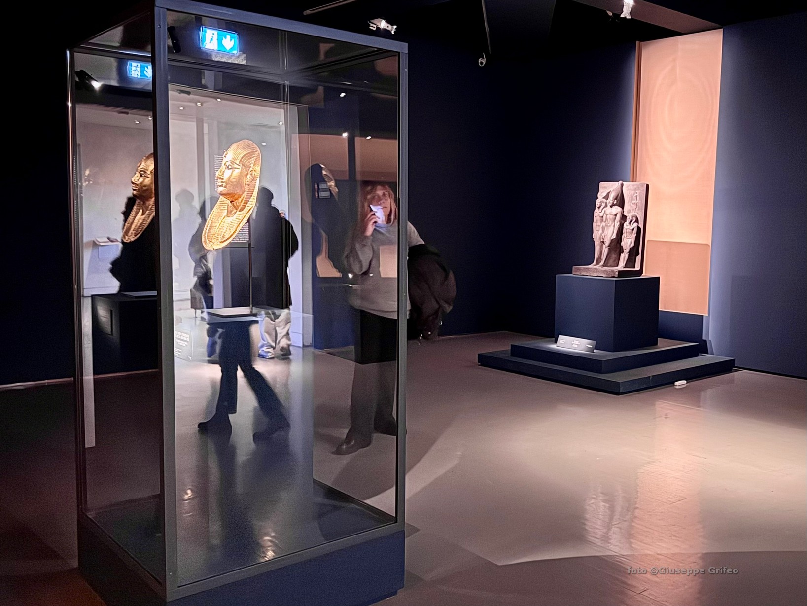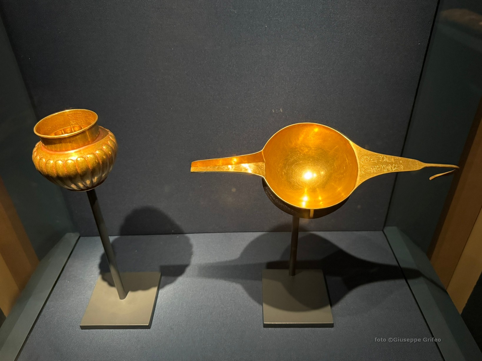 La sensazione è di totale coinvolgimento, l’illuminazione e il gioco fra ombre e coni di luce creano un’atmosfera quasi intima fra visitatore e reperti.