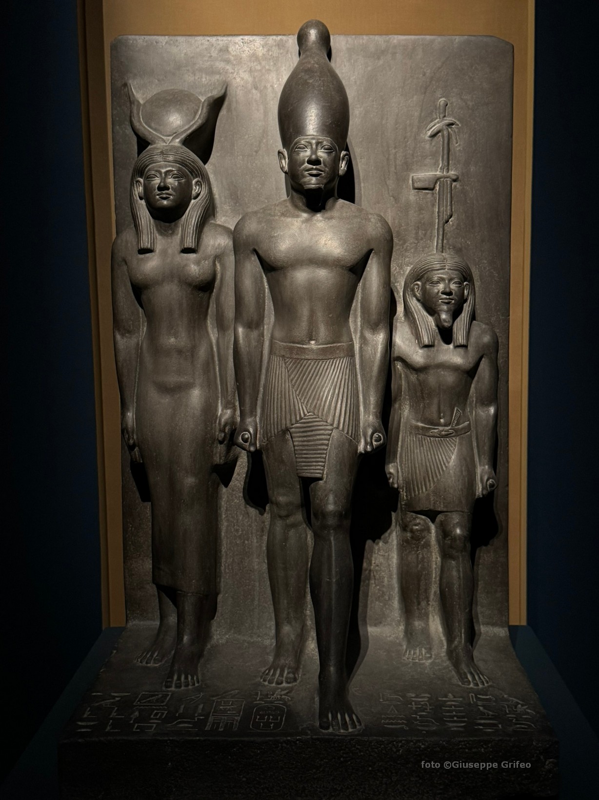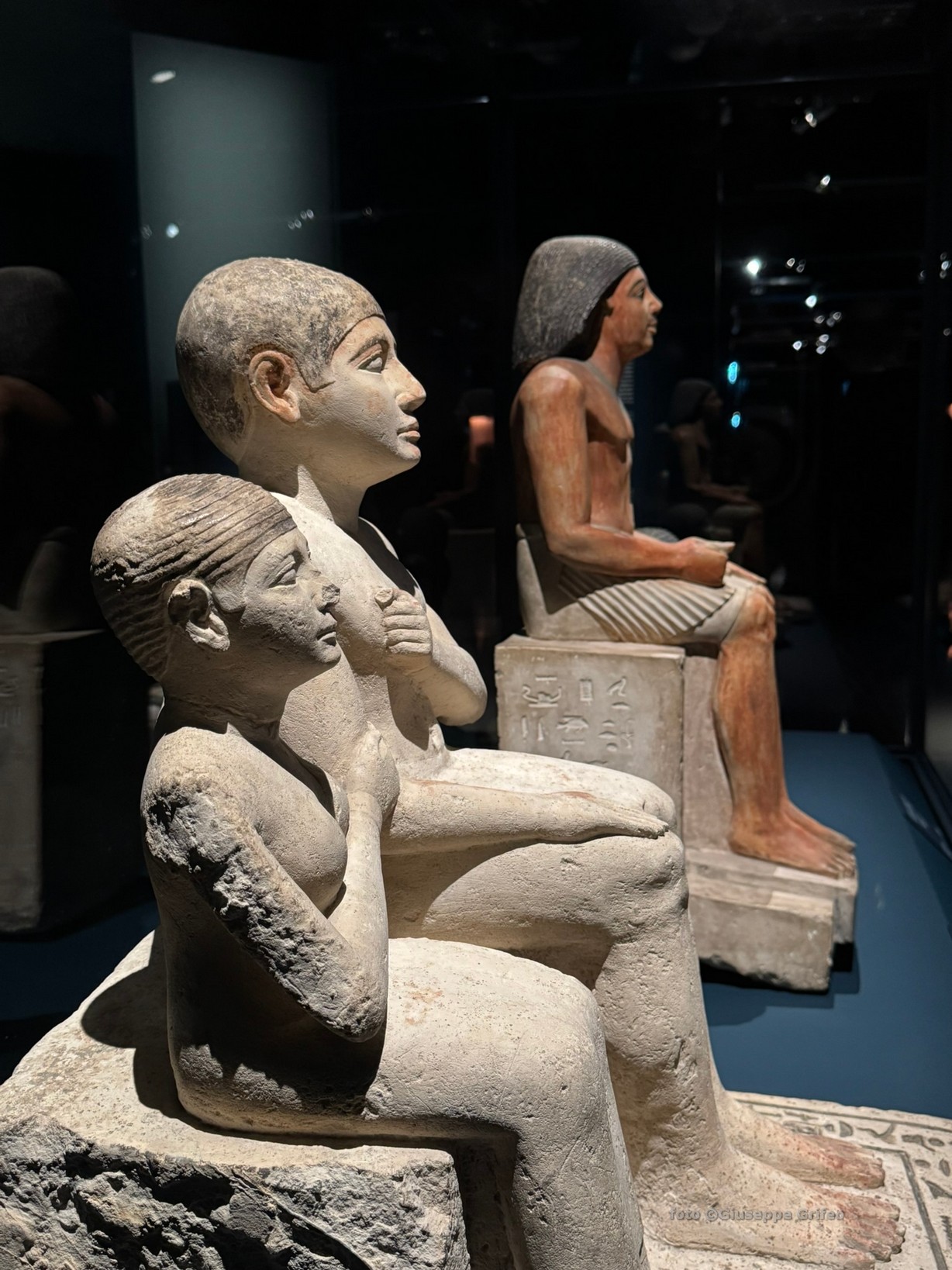 Basta pensare alla presenza di una delle Triadi di Micerino (il faraone della più piccola delle tre Grandi Piramidi di Giza – scultura in scisto, IV dinastia, Antico Regno), con quei corpi che emergono dalla pietra, fissati nel loro movimento in avanti come di liberazione da quel blocco grigio.