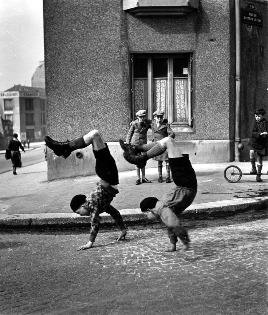 Doisneau osserva la loro presenza con attenzione e rispetto, cogliendo gesti, sguardi e atteggiamenti che rivelano una relazione diretta e immediata con la realtà. Strade, cortili e marciapiedi diventano luoghi di libertà e immaginazione, spazi in cui la vita si manifesta nella sua forma più autentica.