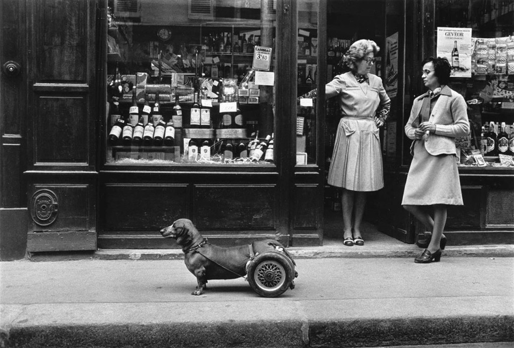 Fra gli scatti iconici presenti alla mostra, immagini iconiche come “Le Baiser de l’Hôtel de Ville” (1950), “Un chien à roulettes” (1977), “La concierge aux lunettes” (1945) e “L’information scolaire” (1956)