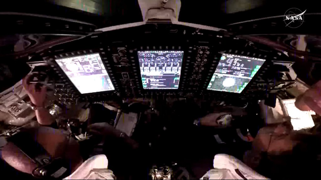Nel giro orbitale intorno alla Terra l’equipaggio ha dovuto affrontare subito un primo problema, con la toilette della capsula, una spia di errore lampeggiava, i dati trasmessi alla sala di controllo e subito uno scambio di ragionamenti sulla soluzione: tutto risolto.