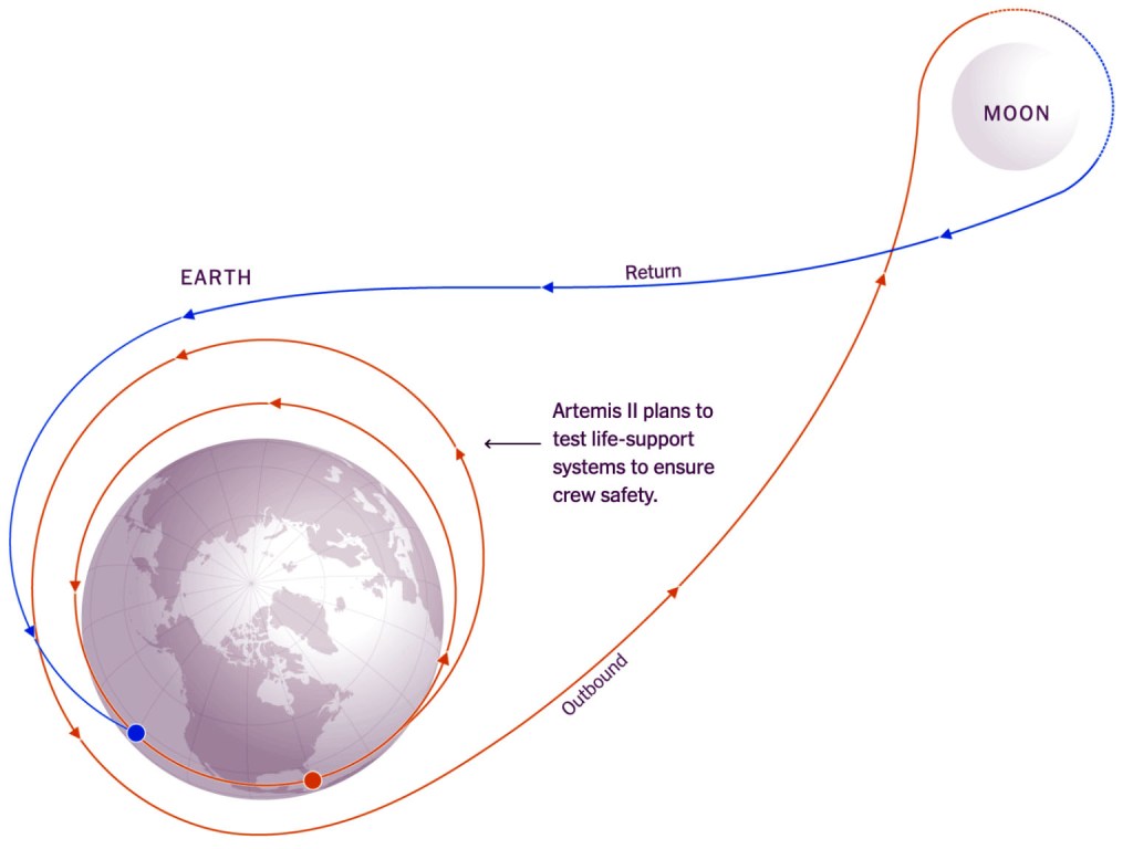 La rotta e le orbite attorno alla Terra e alla Luna sono state scelte e impostate per fare in modo che la capsula Orion giochi con la gravità terrestre e con quella lunare in modo tale che se pure ci fosse un guasto ai motori, la spinta data alla navetta e l’attrazione dei due corpi celesti riportino il veicolo spaziale verso la Terra stessa e al rientro verso casa.